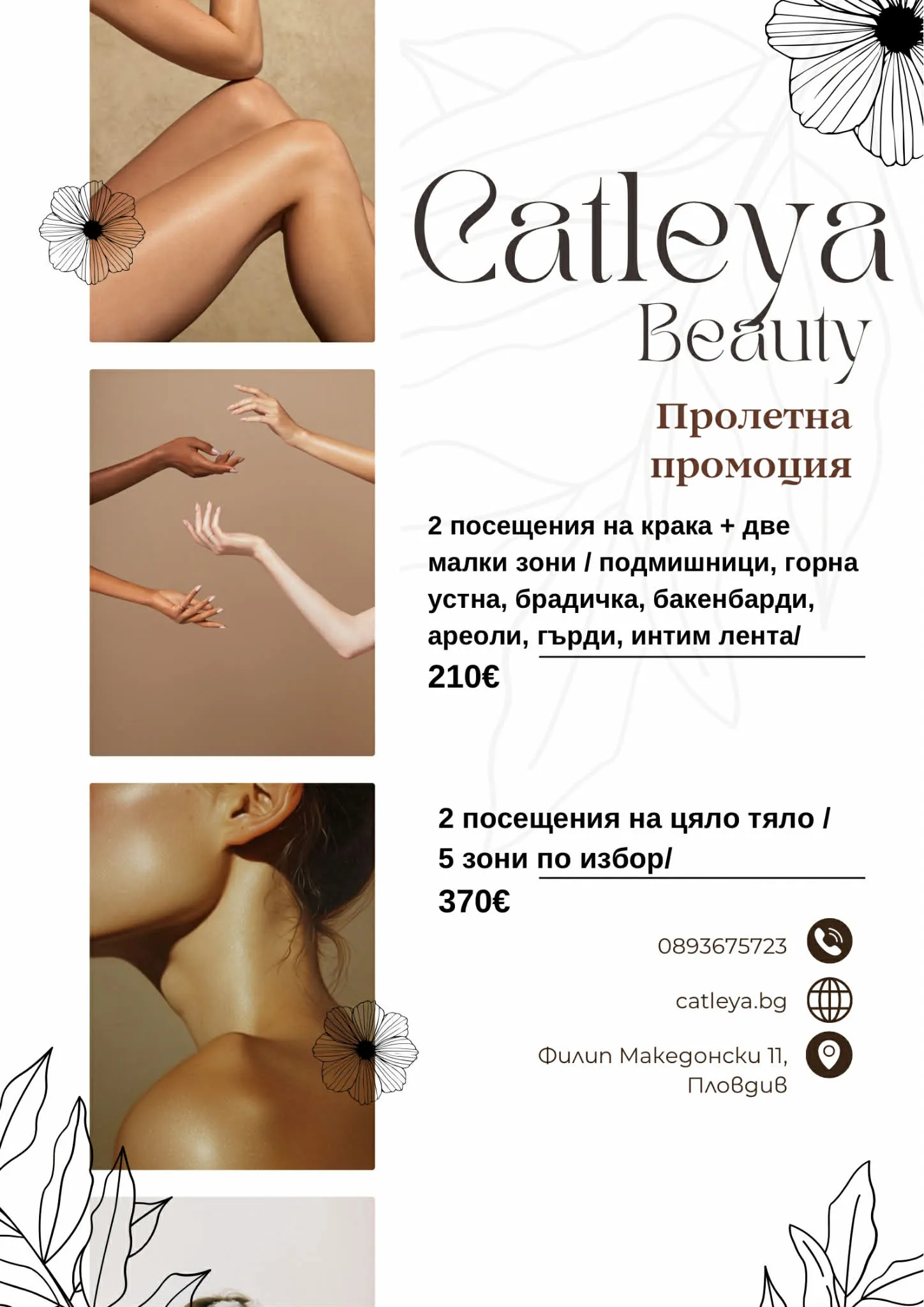 Catleya , където използваме най-новите лазерни технологии, за да ви осигурим гладка кожа без косми, каквато винаги сте искали. Нашите сертифицирани техници гарантират комфортно и ефективно преживяване.